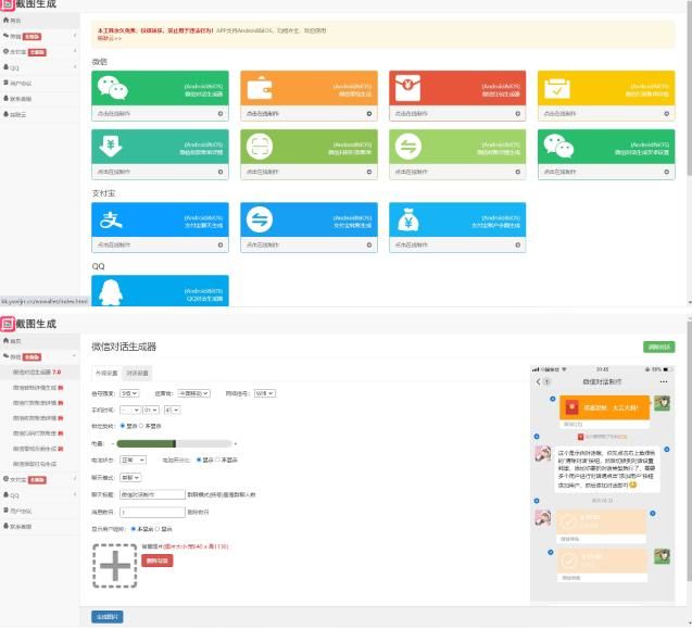 在线一键制作各种截图生成,包含生成功能:微信对话、微信领取红包、微信付款详情、微信收款详情、微信转账详情、微信零钱页面详情、微信扫码付款账单、微信对话和红包带安卓设置、微信朋友圈转发详情、支付宝聊天详情、支付宝转账详情、支付宝账户余额详情、淘宝订单详情、QQ聊天详情、手机短信聊天详情!文章源自:梅一洪梅一洪-https://www.myhzy.cn/2124.html